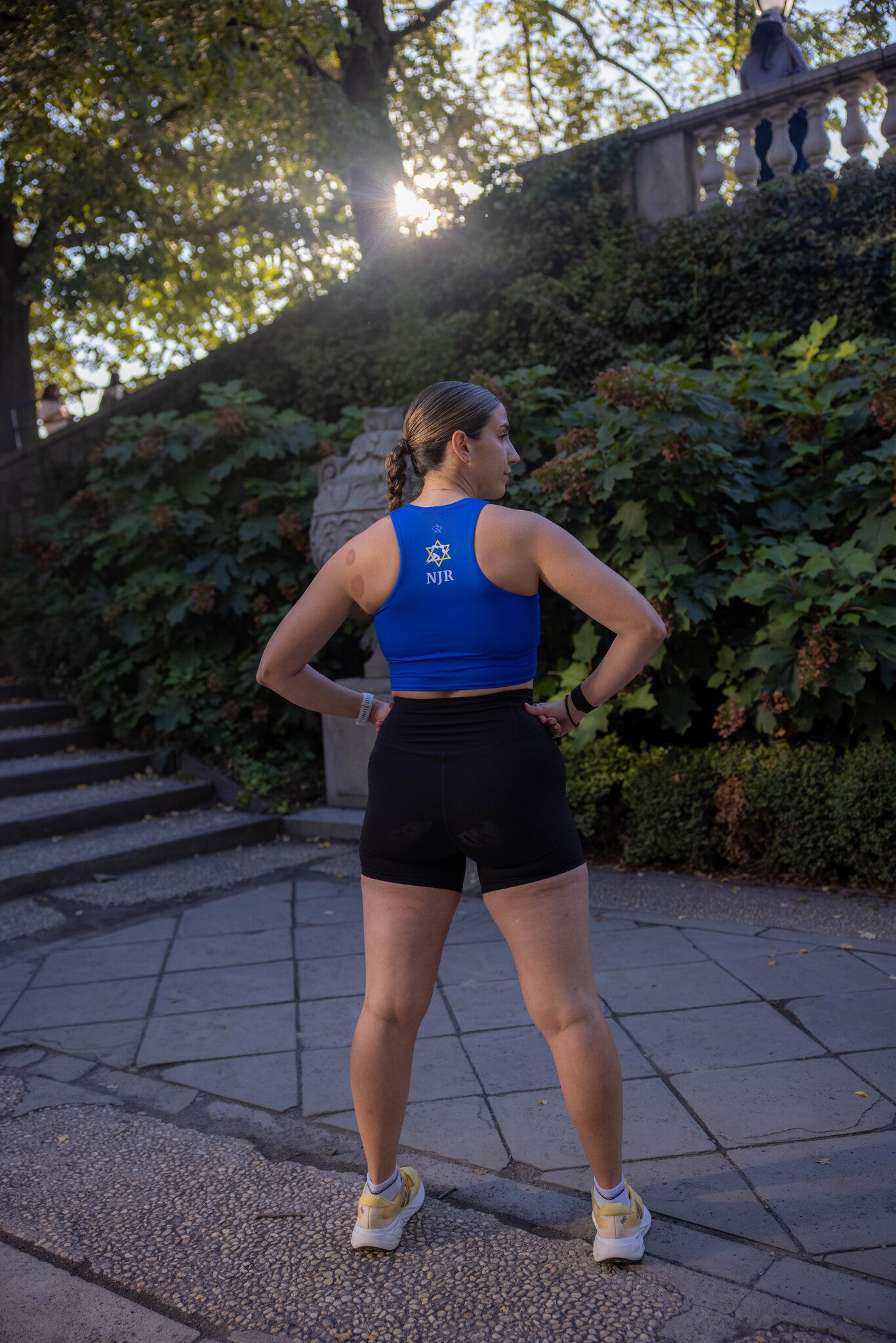 Alright, ladies, ready to unleash your inner eishes chayil on the race course? Our classic crop is now your ultimate race day basherte! With a built-in, compressive sports bra, this top offers moderate support that's as reliable as your bubbe's chicken soup. Fewer seams mean greater comfort, keeping you focused on crushing your personal best, not adjusting your top – because who needs distractions when you're trying to outrun your yetzer hara? Designed specifically for A/B-B/C cups with removable cookies (for that extra bit of oomph, if you so desire!). Made from a divine blend of 76% polyester & 24% spandex, with a rabbitMESH bra that's 95% polyester & 5% spandex, it's super lightweight & quick-drying, so you'll stay cooler than a cucumber on Shabbat. The fitted style is flattering without being too much, and it's cropped below the chest for that perfect modern look. Just machine wash cold and tumble dry low (no bleaching, please – this top is a neshama and deserves respect!). Get ready to run your heart out, feel fabulous, and maybe even inspire a few "Yasher Koach!" shouts from the sidelines. L'chaim to strong women and even stronger finishes!